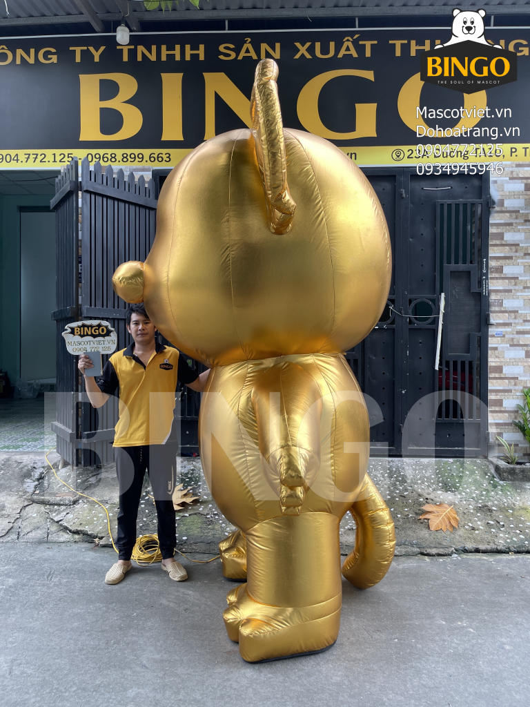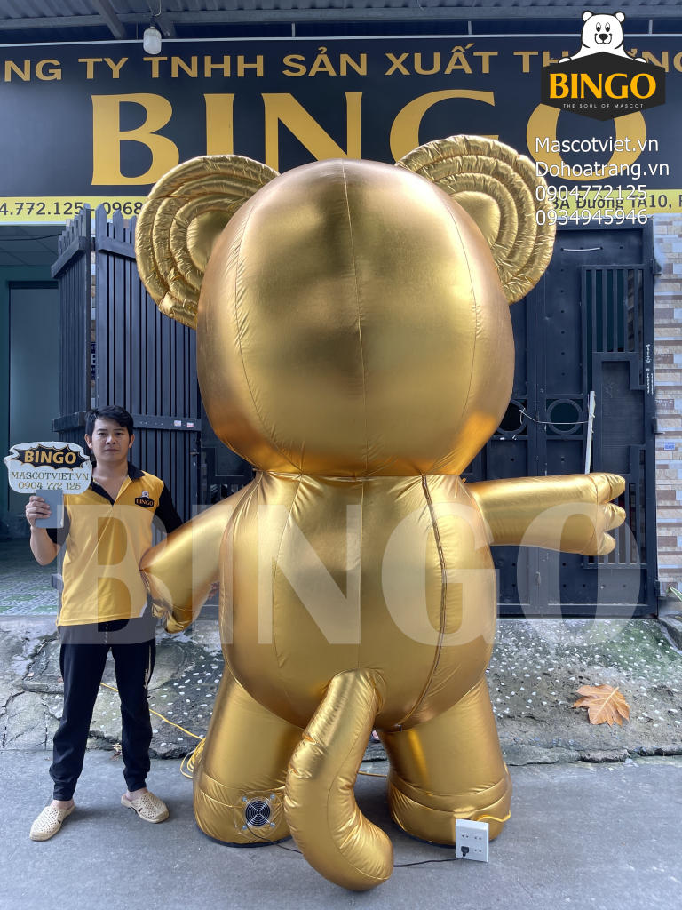 Mô hình hơi Gấu Vàng cao 2m5 được thiết kế với chất liệu vải hơi bóng màu vàng kim, tạo hiệu ứng sang trọng và bắt mắt. Hình dáng tròn trịa, dễ thương cùng tai to xoắn ốc đặc trưng. Với kích thước lớn nổi bật, mô hình rất phù hợp cho các sự kiện khai trương, quảng bá thương hiệu, chụp ảnh check-in hay trang trí trung tâm thương mại.