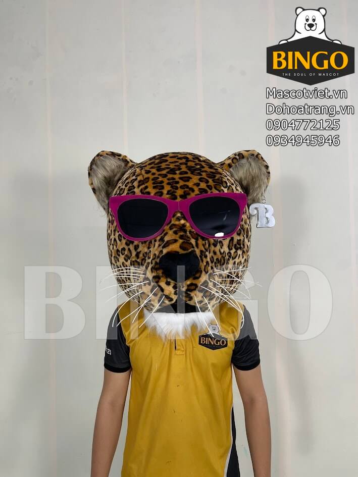 Đầu mascot báo đeo kính hồng được BINGO sản xuất theo yêu cầu của khách hàng.