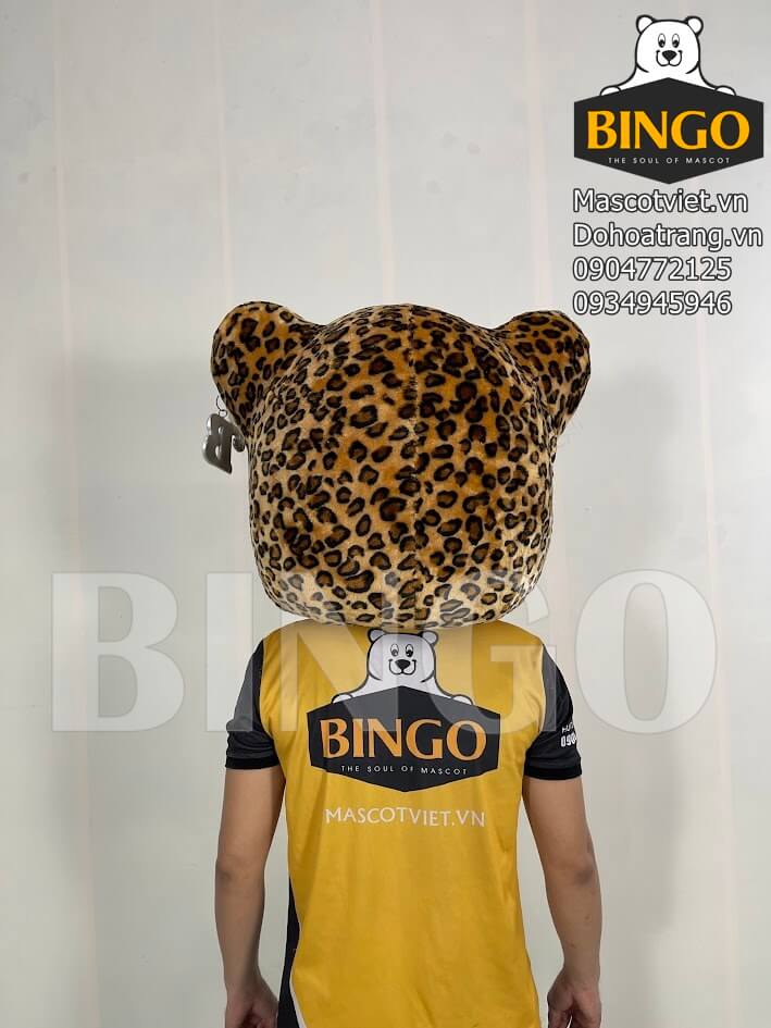 Đầu mascot báo đeo kính hồng mang phong cách hiện đại, cá tính và cực kỳ nổi bật. Thiết kế đầu báo với họa tiết da báo chân thực cùng chiếc mũi đen, ria mép trắng và phần kính râm màu hồng tạo điểm nhấn trẻ trung, thời trang.