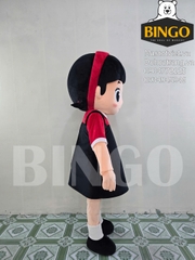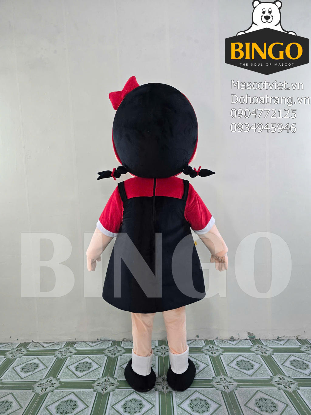 Thân dáng của mascot gọn gàng, mang trang phục đặc trưng: chiếc áo sơ mi cổ bẻ màu trắng kết hợp cùng áo yếm màu đen. Sự kết hợp giữa đỏ, trắng và đen tạo nên sự đối lập mạnh mẽ, thu hút, đồng thời phản ánh tính chất hiện đại, năng động của thương hiệu.