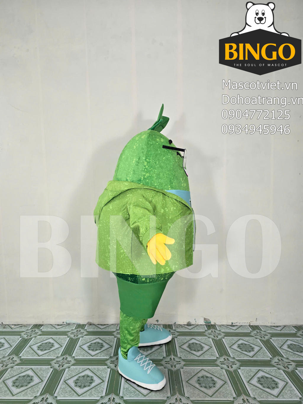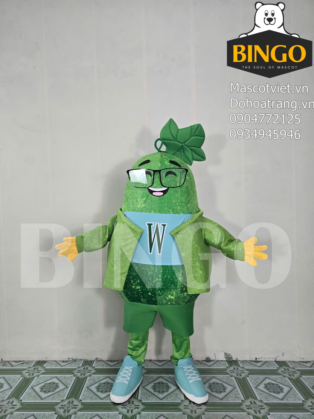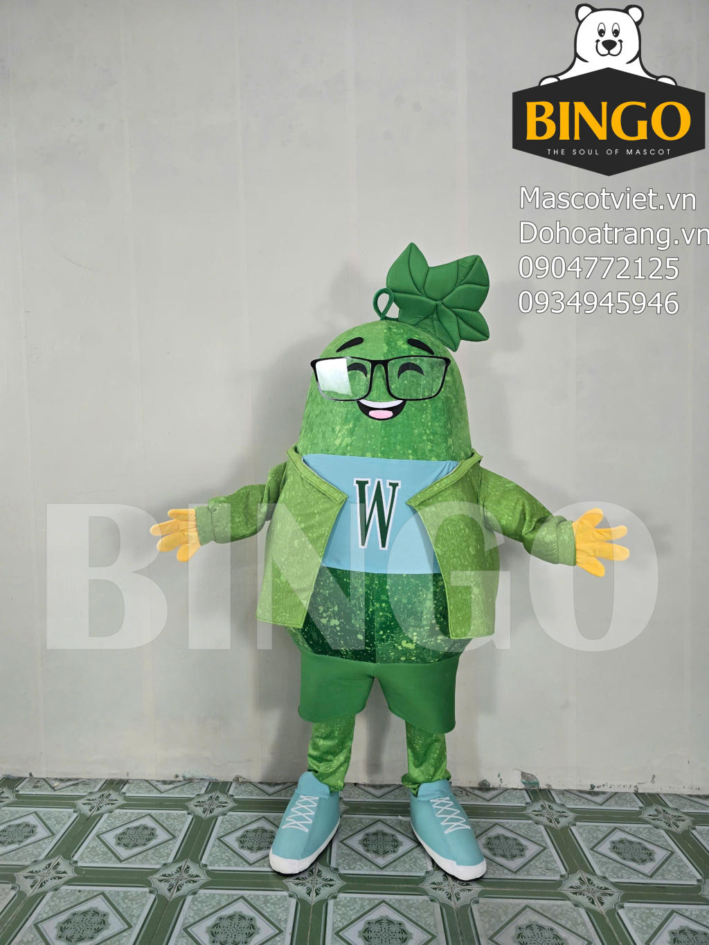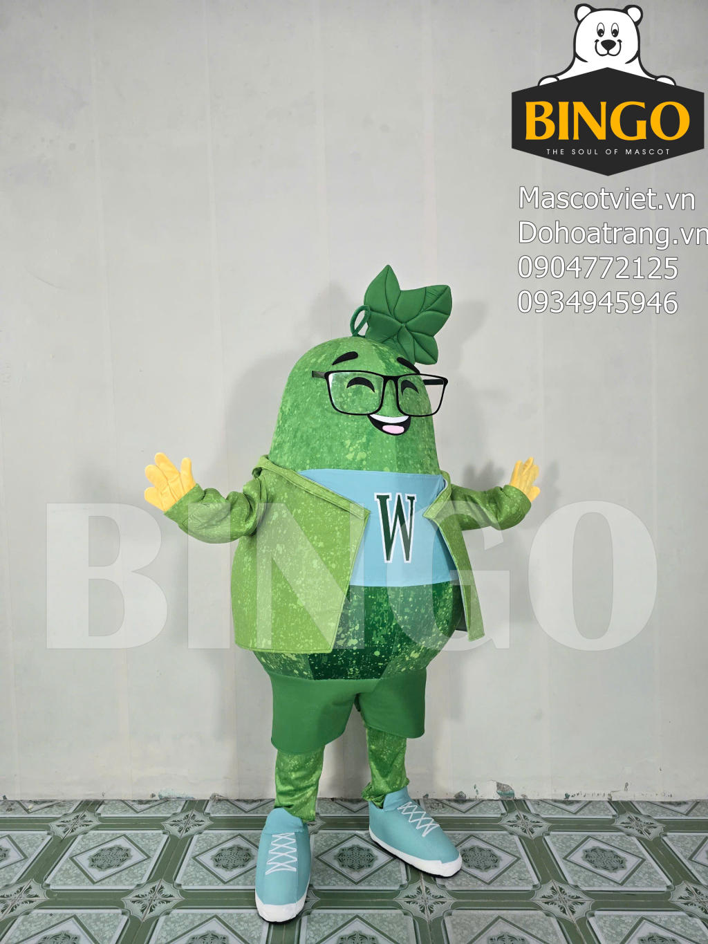 Tạo hình chân thực: Thân mascot được thiết kế với hình dáng thuôn dài, màu sắc xanh mướt đặc trưng, phỏng theo trái bí thật một cách tỉ mỉ.