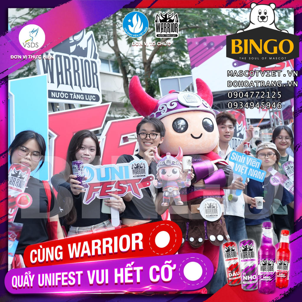 Mascot Warrior là sản phẩm truyền thông độc đáo, hiện thân cho dòng nước tăng lực Warrior nổi tiếng, được thiết kế và sản xuất chuyên nghiệp bởi Mascot Bingo. Lấy cảm hứng từ hình tượng những chiến binh Viking huyền thoại, mascot này không chỉ là một linh vật quảng cáo mà còn là biểu tượng của tinh thần thép, sự bền bỉ và sức sống mãnh liệt.