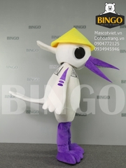 Tạo hình: Mascot sở hữu tông màu trắng chủ đạo thanh thoát, kết hợp với các chi tiết mỏ, chân và họa tiết trên cánh màu tím nổi bật.
