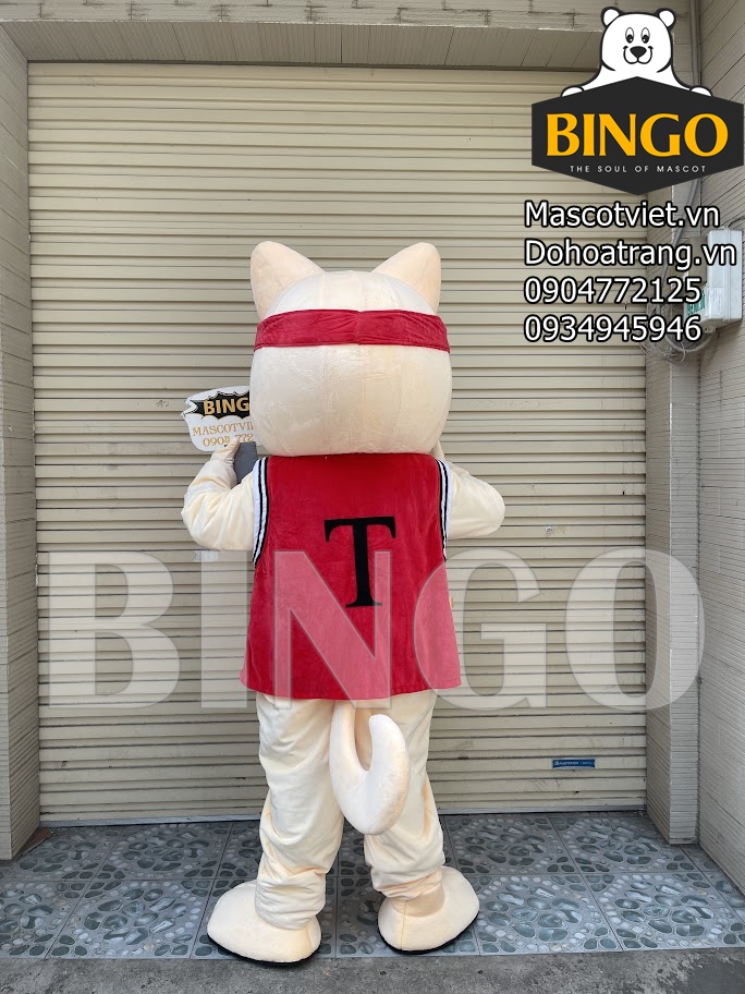 Thân mascot nổi bật với chiếc áo ba lỗ thể thao sắc đỏ, viền đen. Mascot được trang bị tay, chân, linh hoạt, có thể cầm nắm, di chuyển theo nhu cầu.