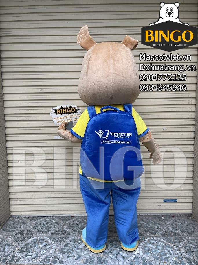 + Thân mascot được thiết kế cách điệu, chú chó khoác lên mình chiếc áo màu vàng, trước ngực gắn logo Vietaction, phía sau đeo chiếc balo Vietaction màu xanh. Hai chi trước cách điệu thành đôi tay với các ngón, có thể cầm nắm linh hoạt, dễ dàng.