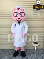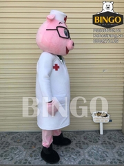 Ngoài ra, mascot con heo bác sĩ này còn được trang bị thêm các phụ kiện như nón bác sĩ hoặc cặp kính cận làm cho chú heo này càng thêm thu hút và sinh động.
