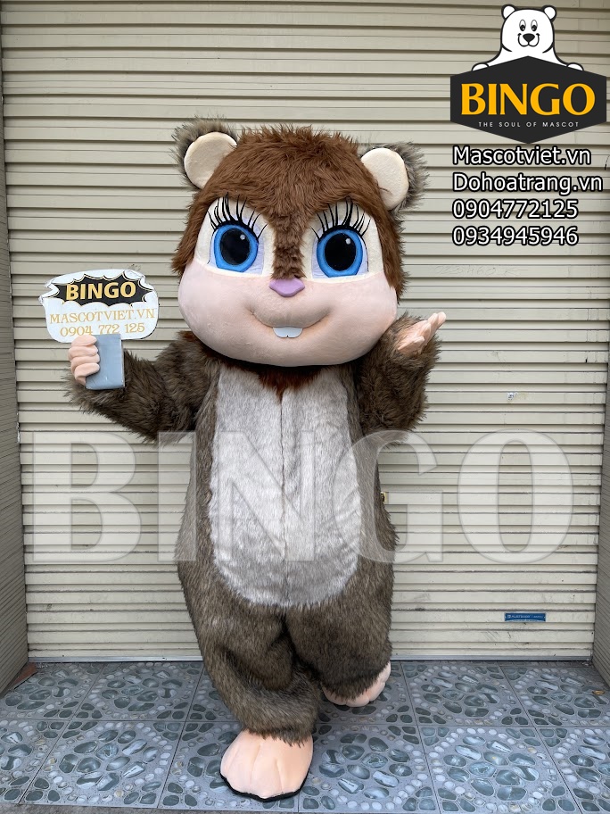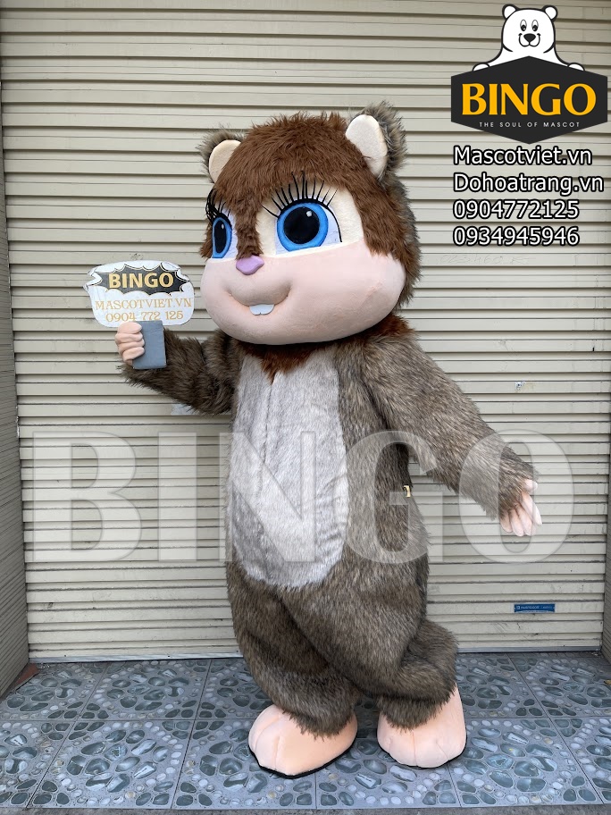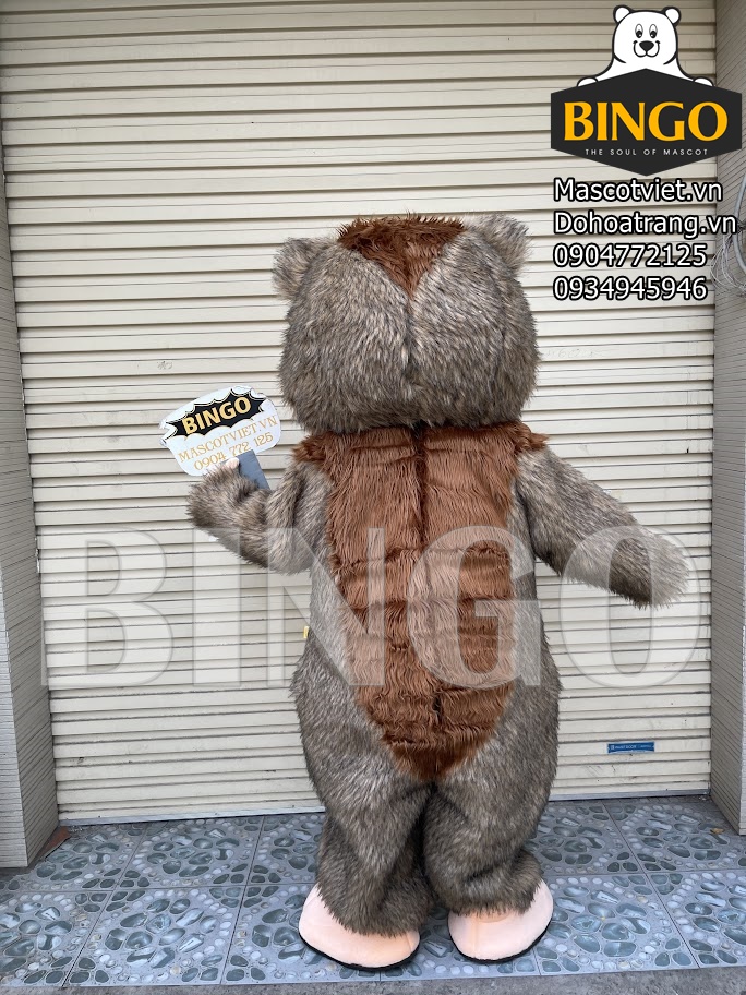 Mascot con sóc 03 được thiết kế với chiều cao trung bình từ 1m6 đến 1m8, tương đương với chiều cao của người mặc.