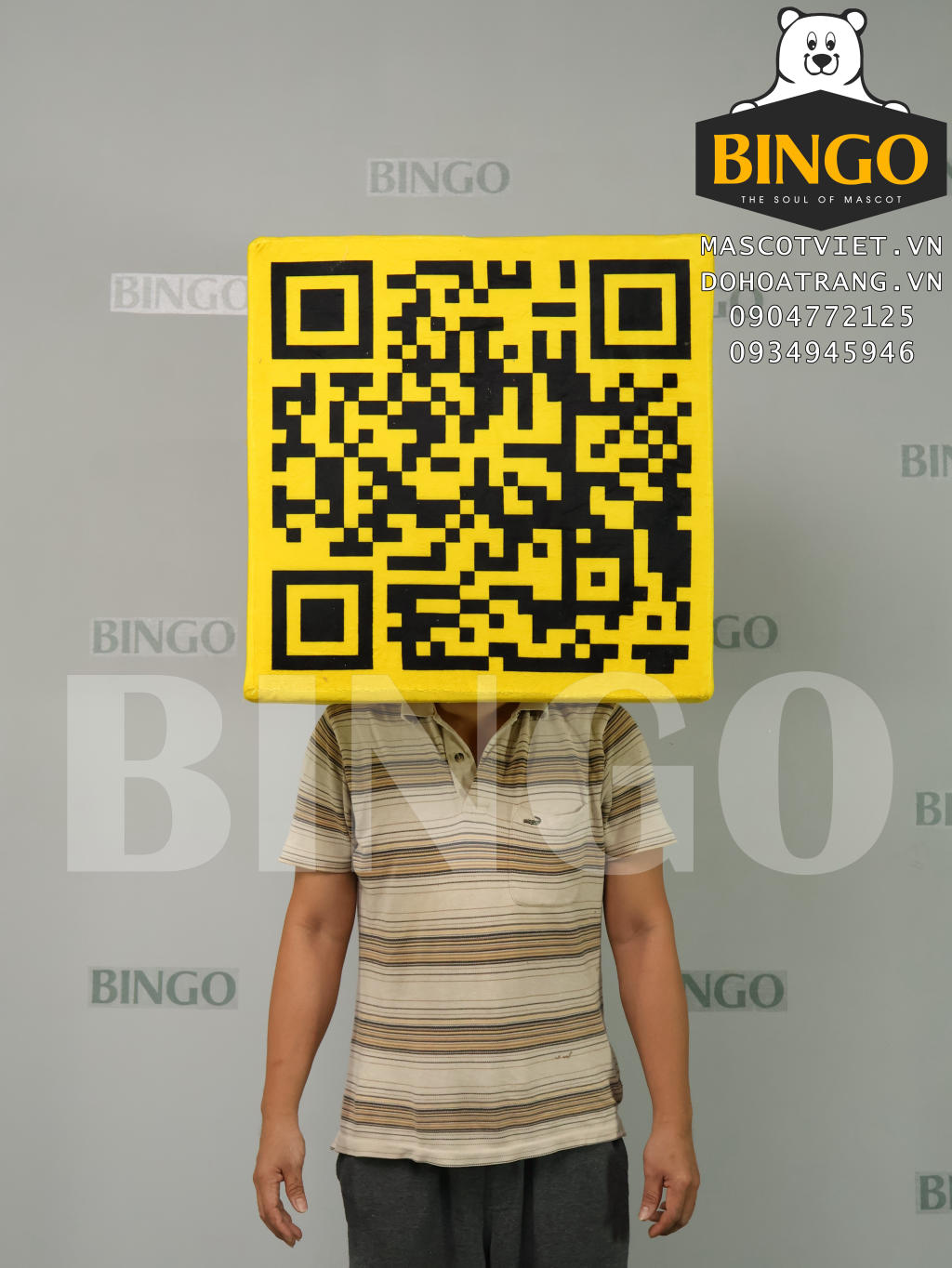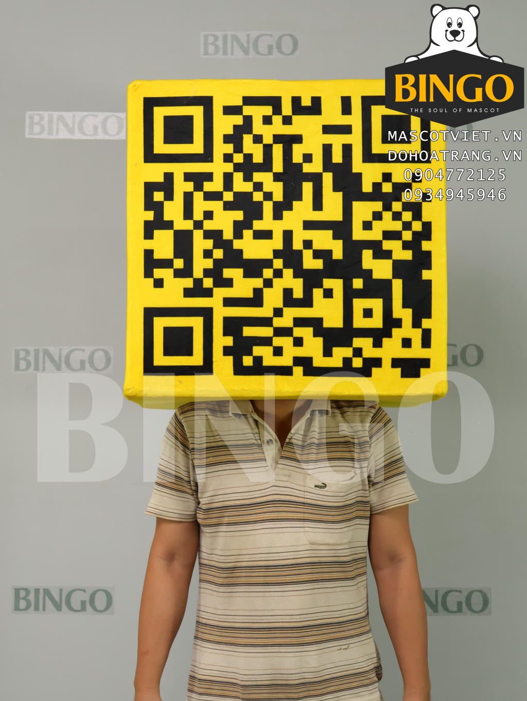 Mascot Đầu Hộp QR Code được BINGO sản xuất theo yêu cầu của khách hàng.