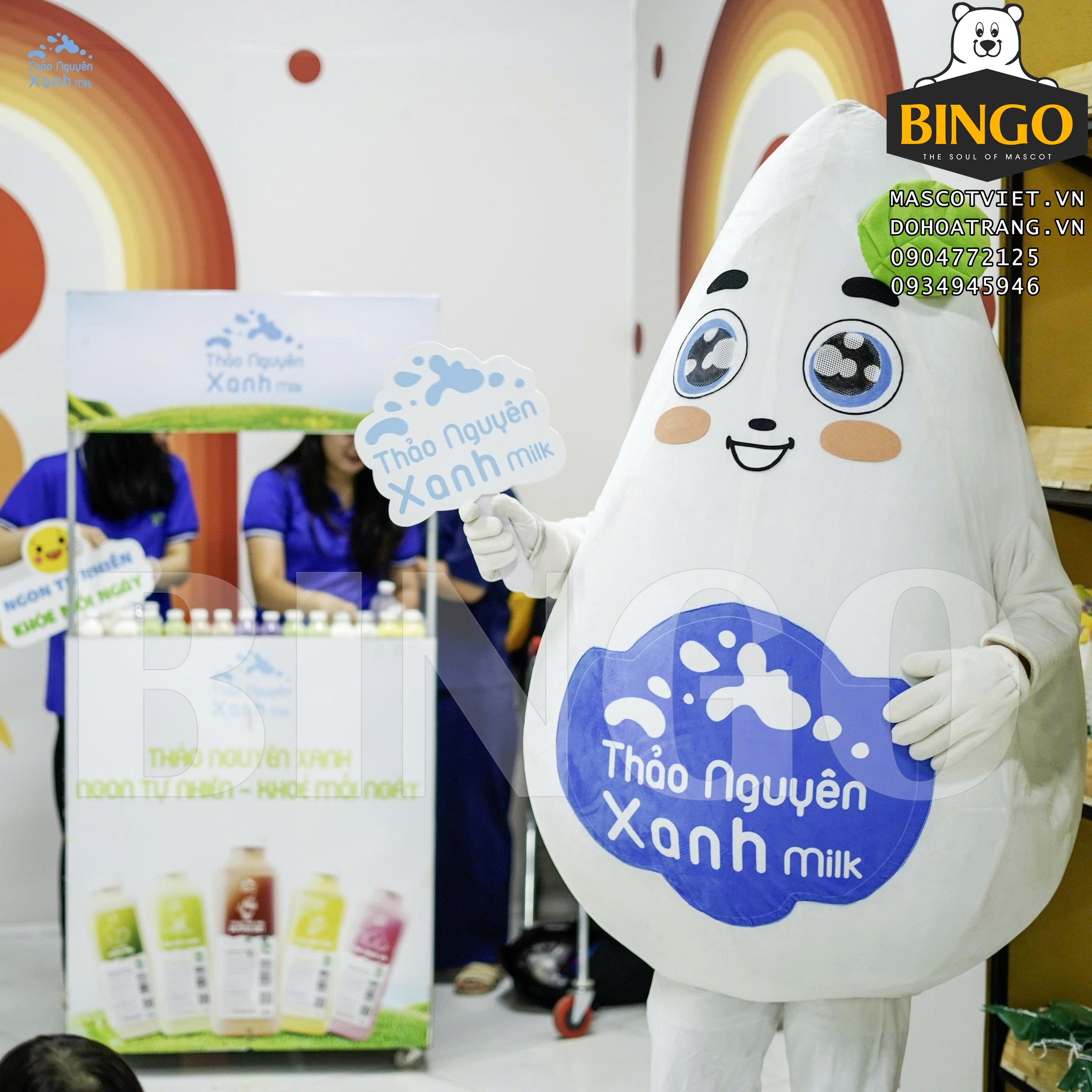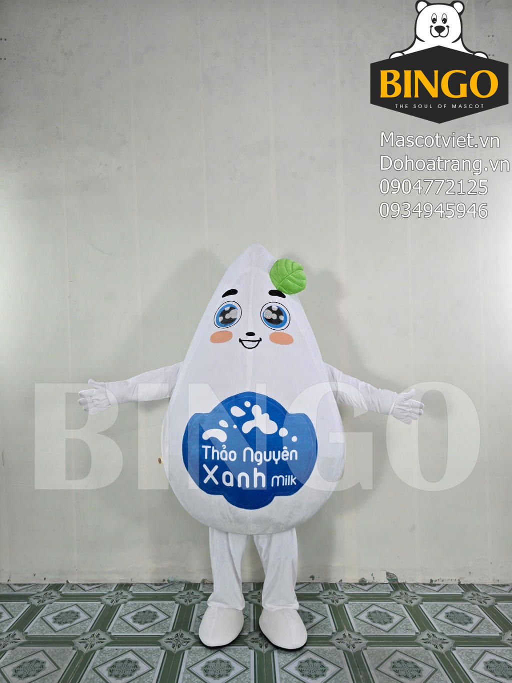 Mascot Giọt Sữa Thảo Nguyên Xanh được BINGO sản xuất theo yêu cầu của khách hàng.