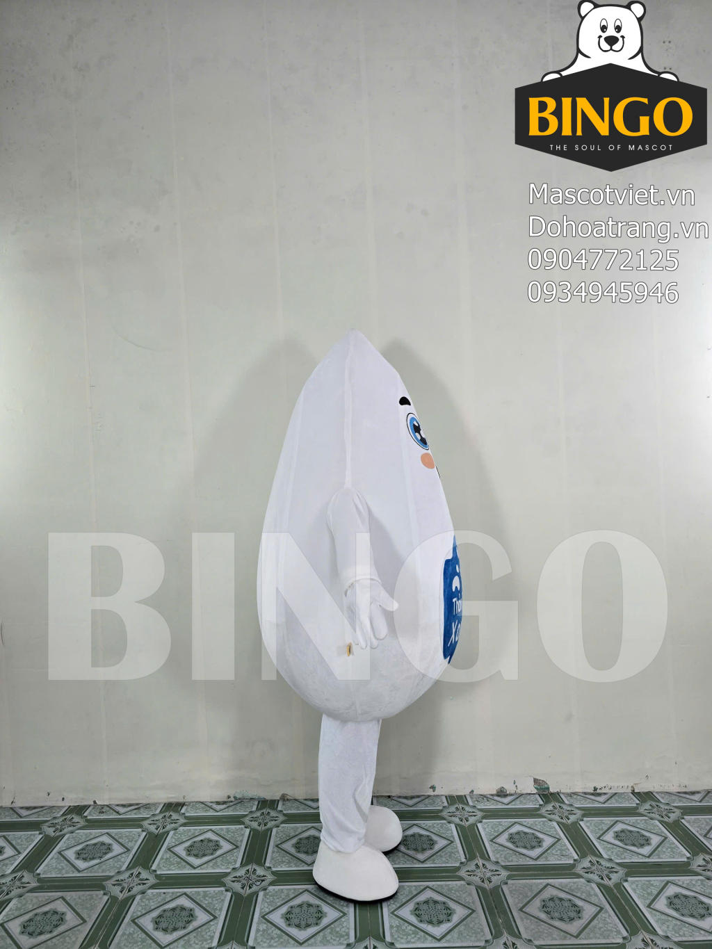 • Hình dáng chuẩn xác: Mascot mô phỏng hình giọt sữa màu trắng ngộ nghĩnh, đại diện cho sự tinh khiết và bổ dưỡng của sản phẩm.