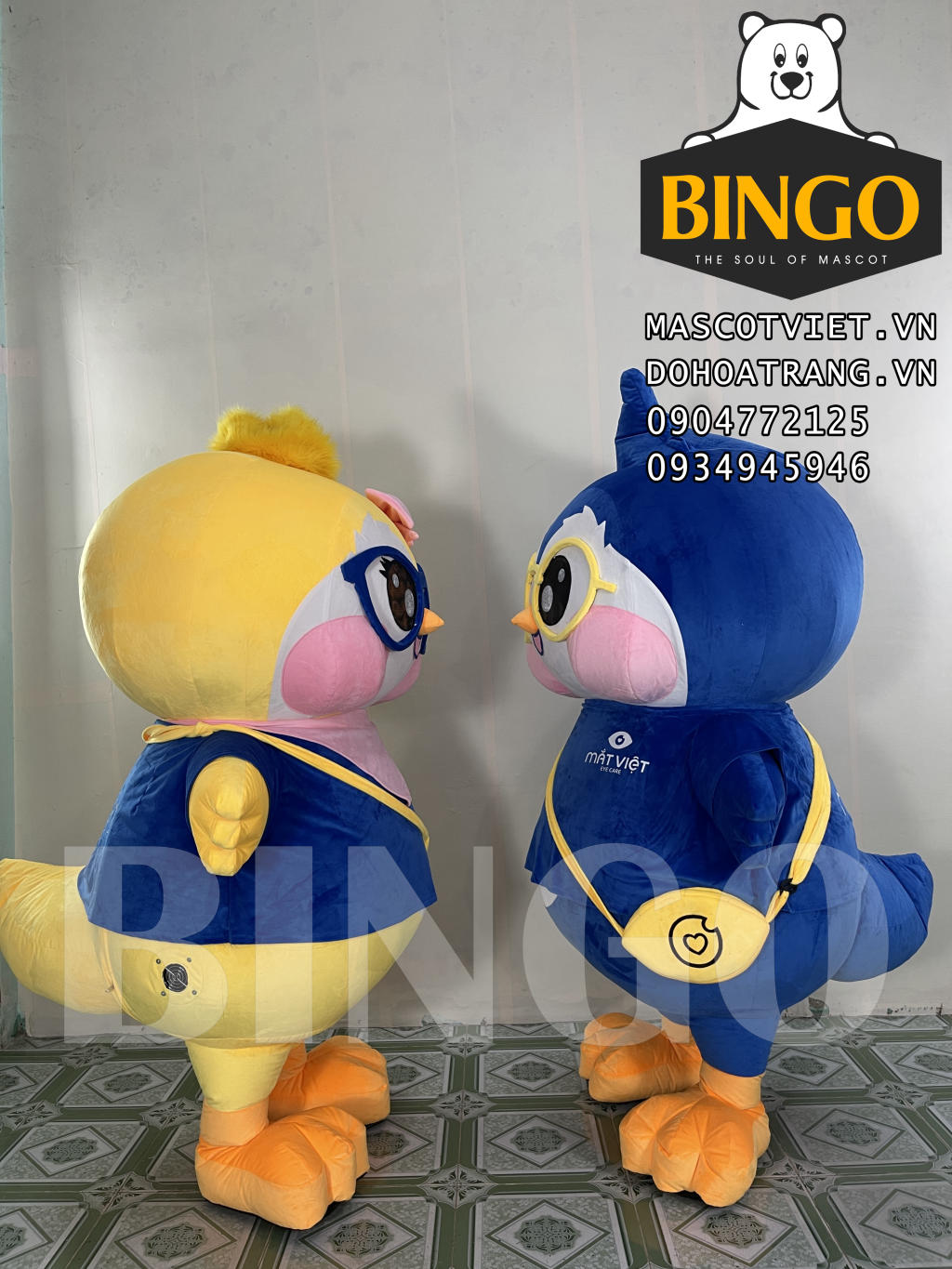 Không chỉ là linh vật, Mascot Chim Vành Khuyên còn là người bạn đồng hành tin cậy, đại diện cho sự tận tâm và phong cách thời thượng mà Mắt Việt luôn hướng tới. Hãy để cặp đôi này khuấy động không gian và mang nụ cười đến cho khách hàng của bạn!