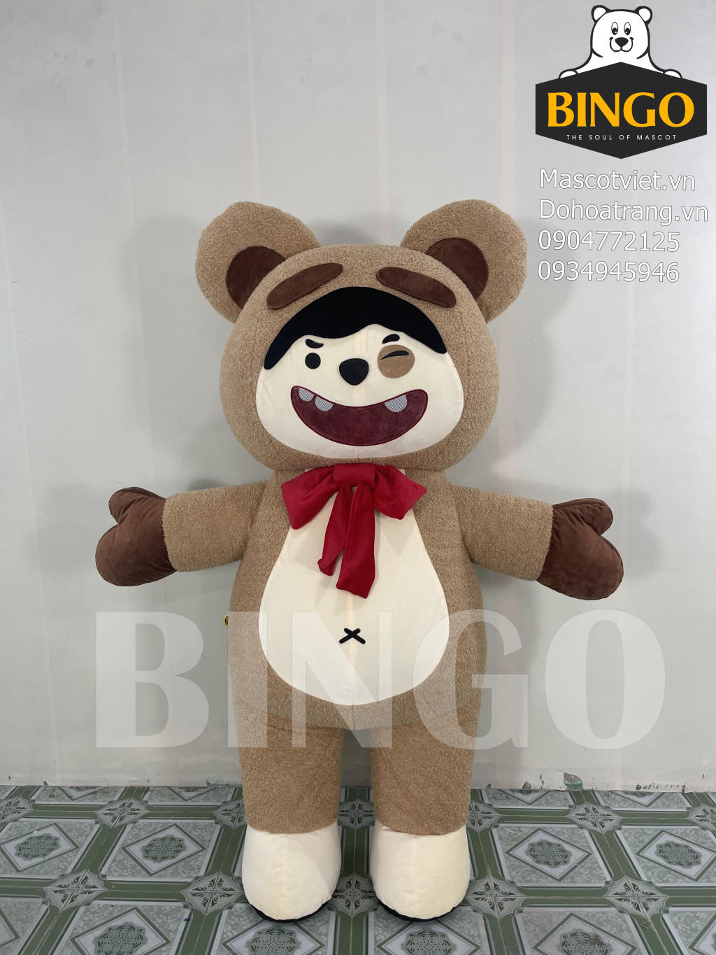 Mascot hơi gấu hạt dẻ được BINGO sản xuất theo yêu cầu của khách hàng.