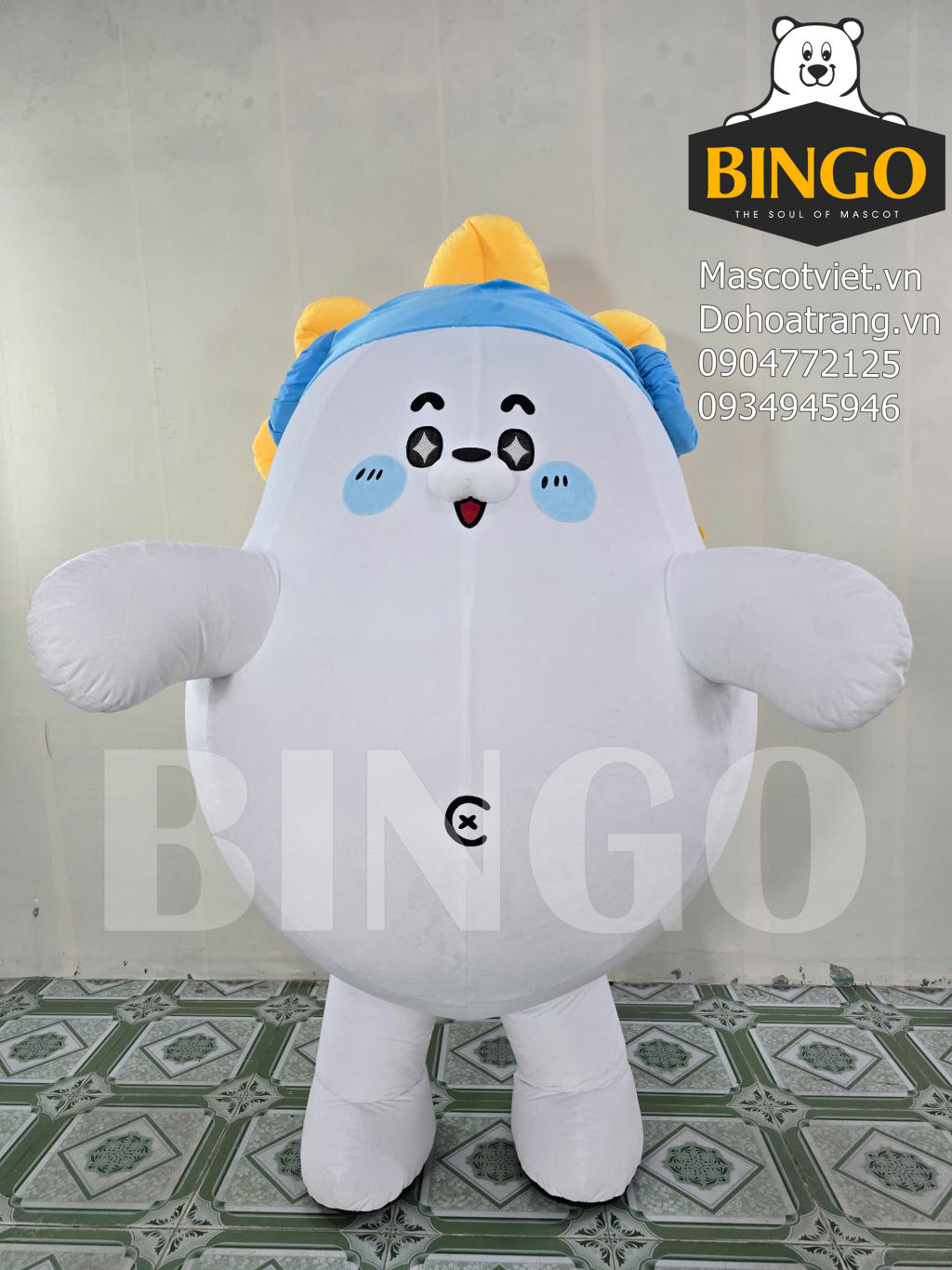 Mascot Hơi Hải Cẩu Hoa Lam Thảo được BINGO sản xuất theo yêu cầu của khách hàng.