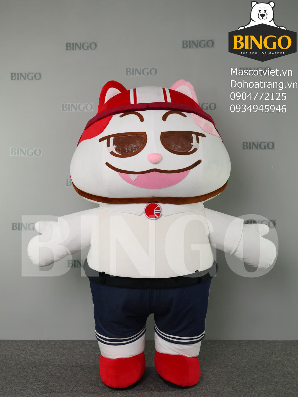 Mascot hơi mèo rô là sản phẩm thiết kế sáng tạo từ BINGO, mang đến diện mạo vô cùng hiện đại và năng động cho các hoạt động quảng bá thương hiệu. Với tông màu trắng chủ đạo phối cùng sắc đỏ rực rỡ, chú mèo Rô dễ dàng thu hút mọi ánh nhìn bởi phong cách "cool ngầu" và đầy cá tính.