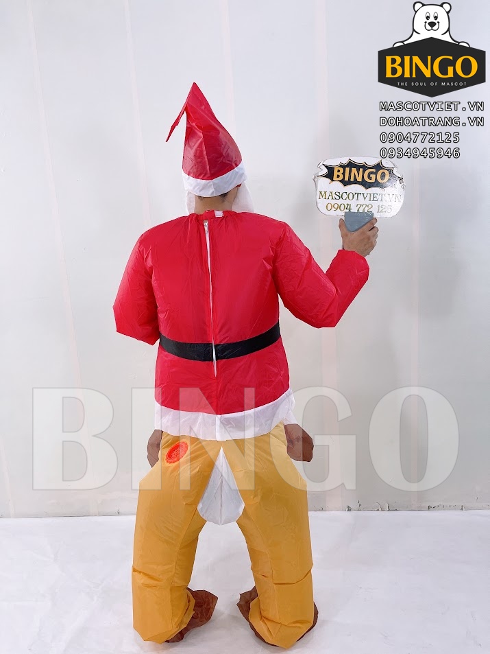 Mascot hơi ông già Noel cưỡi tuần lộc được thiết kế liền khối người mặc chỉ cần chui vào cắm điện là mascot sẽ tự phồng và sử dụng