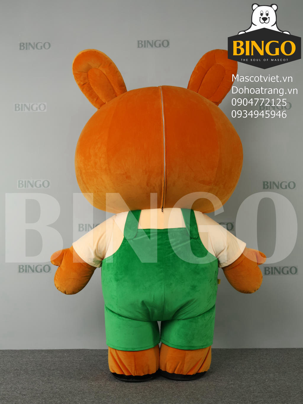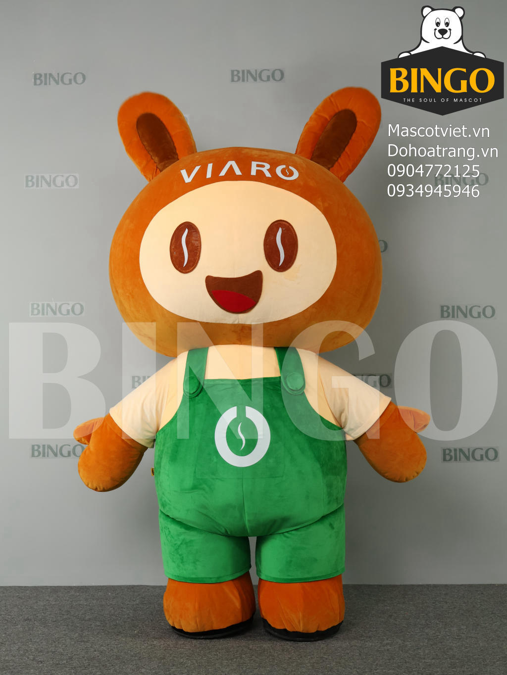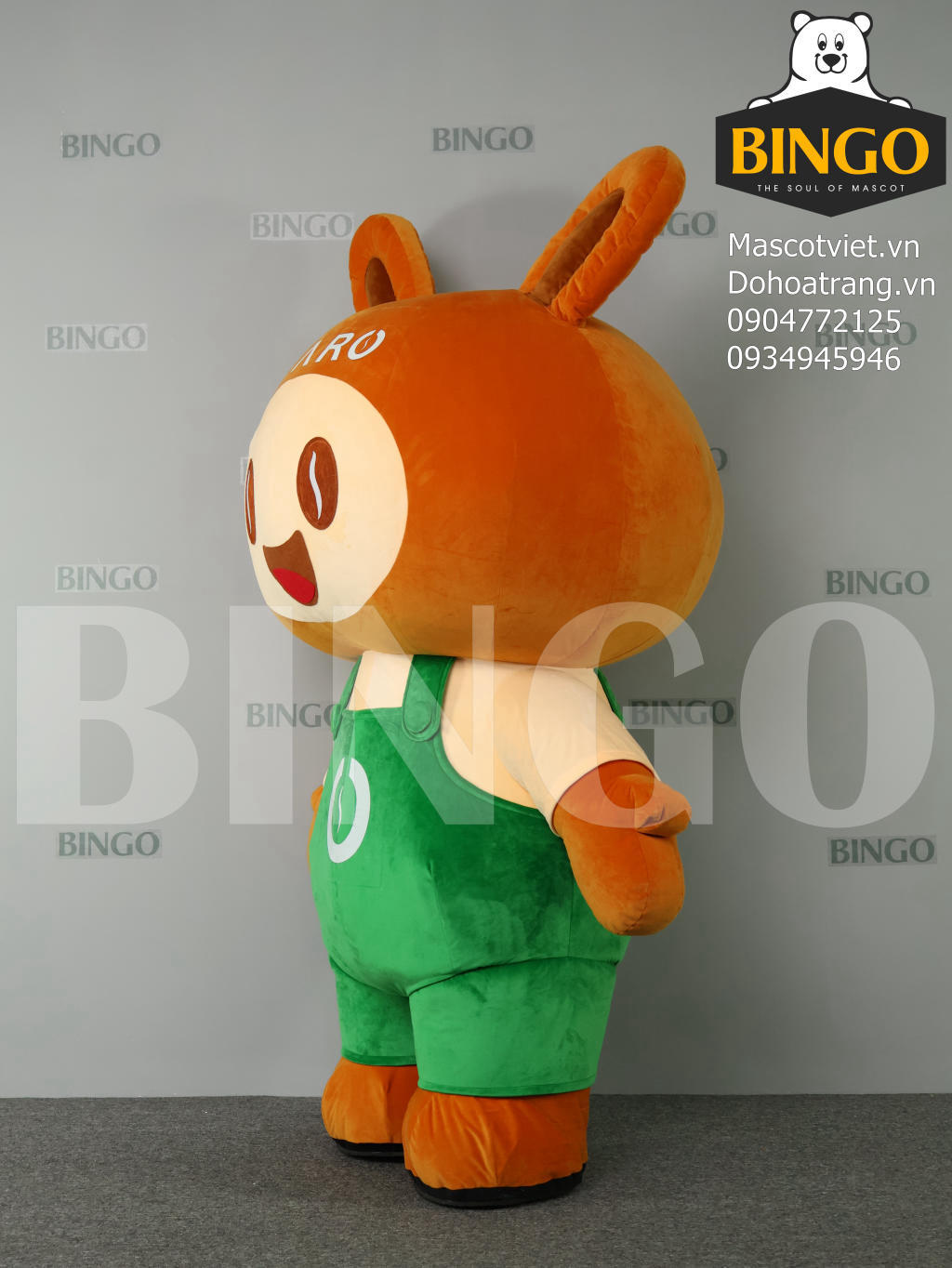 Kiểu dáng: Mascot mô phỏng một nhân vật thỏ đáng yêu với đôi tai lớn, gương mặt rạng rỡ và đôi mắt hình hạt cà phê đặc trưng, tạo thiện cảm ngay từ cái nhìn đầu tiên.