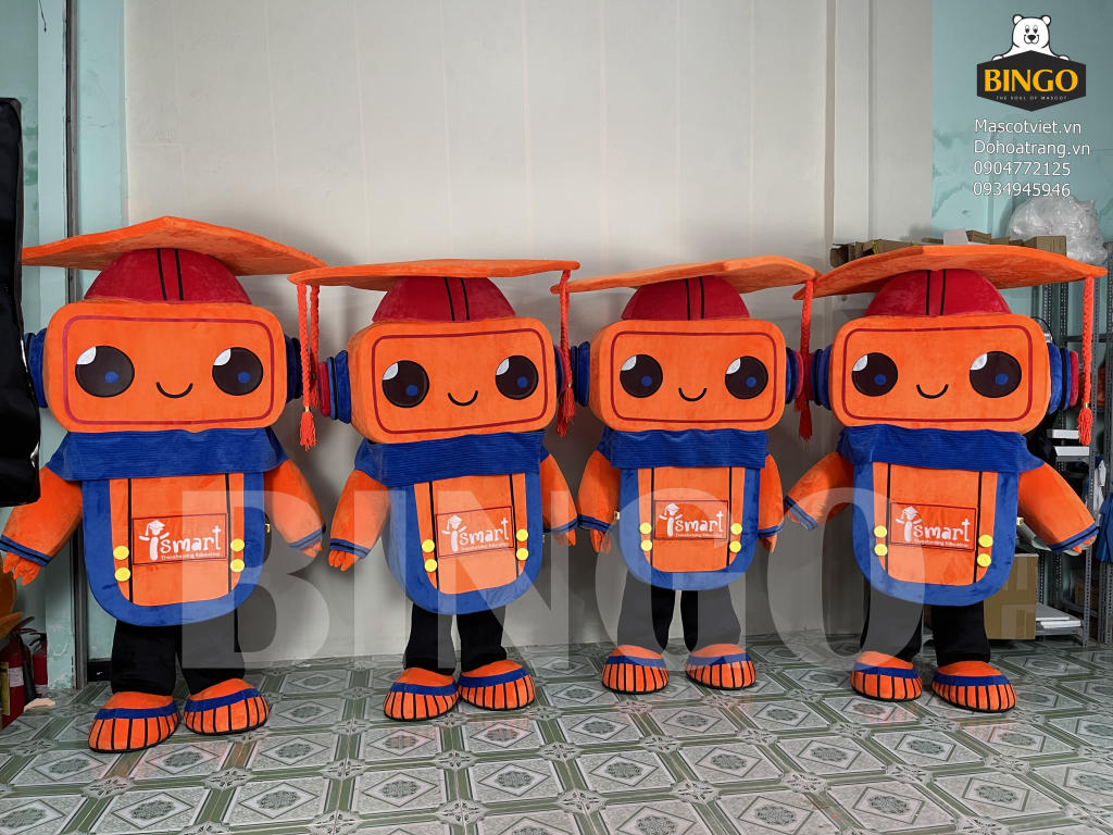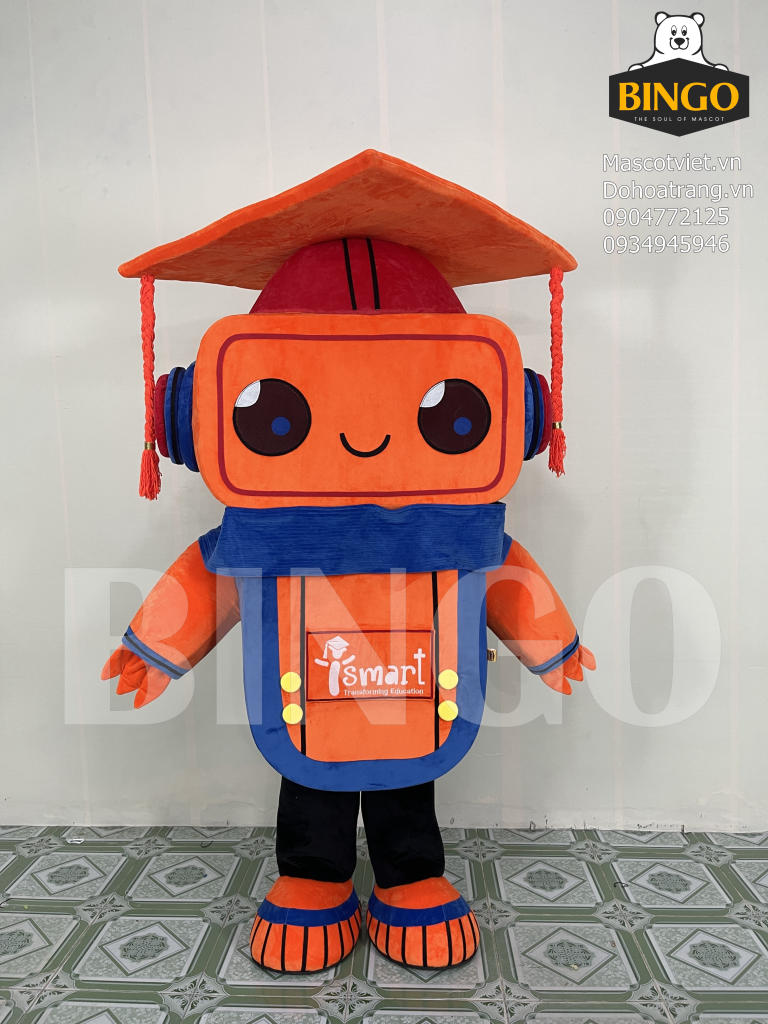Hình dáng: Mascot có hình dạng của một robot dễ thương, thân thiện với trẻ em.