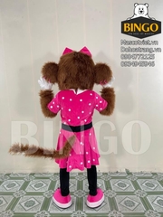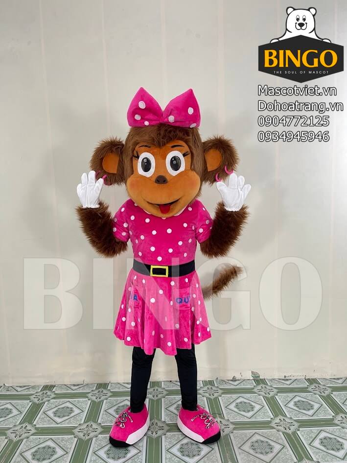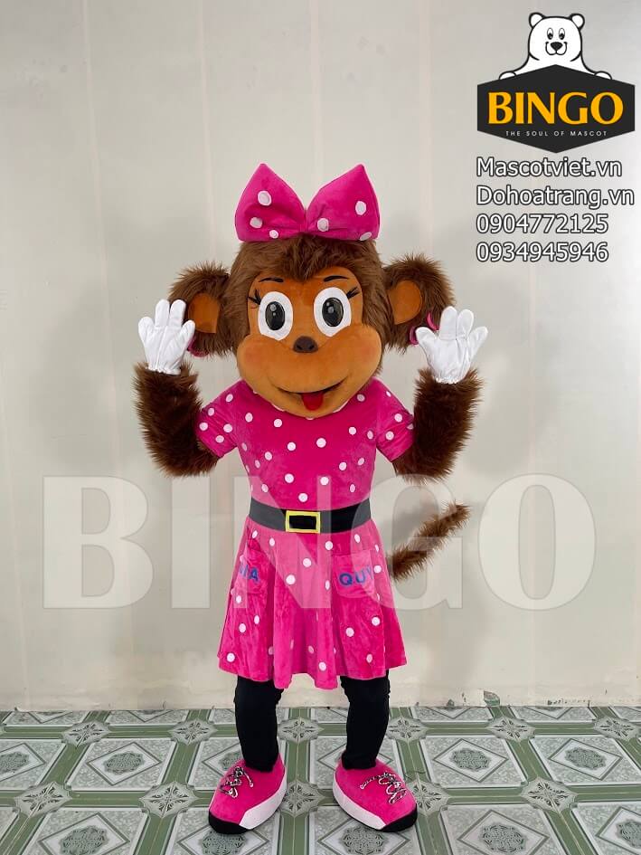 Mascot khỉ Neomax nữ là mẫu linh vật quảng cáo nổi bật được thiết kế bởi BINGO, mang phong cách dễ thương và sinh động. Nhân vật là một cô khỉ nhỏ mặc váy hồng chấm bi nổi bật, đi kèm nơ to cùng màu trên đầu, tạo cảm giác tươi sáng và thân thiện. Phần đầu khỉ được tạo hình tỉ mỉ với đôi mắt to tròn, nụ cười rạng rỡ và lớp lông nâu mềm mại, giúp mascot trở nên sống động và gần gũi. Bộ trang phục váy hồng nổi bật kết hợp giày cùng tông màu tạo nên tổng thể hài hòa, thu hút ánh nhìn. Mascot khỉ Neomax rất phù hợp sử dụng trong các sự kiện quảng bá thương hiệu, hoạt náo, lễ khai trương hoặc chương trình dành cho thiếu nhi. Với chất liệu cao cấp, form dáng chuẩn và màu sắc bắt mắt, mẫu mascot này giúp tăng nhận diện thương hiệu và tạo bầu không khí vui tươi cho mọi sự kiện.