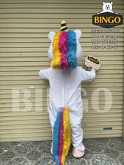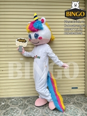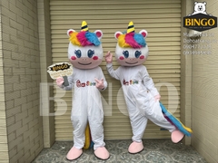 Mascot động vật kỳ lân Cherry Store nổi bật với tông màu trắng kết hớp với các gam màu nổi bật như xanh, hồng, vàng ở phần bờm và đuôi kỳ lân khiến chú càng dễ nhận diện.