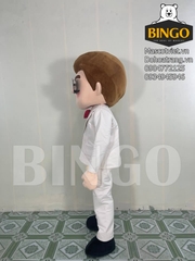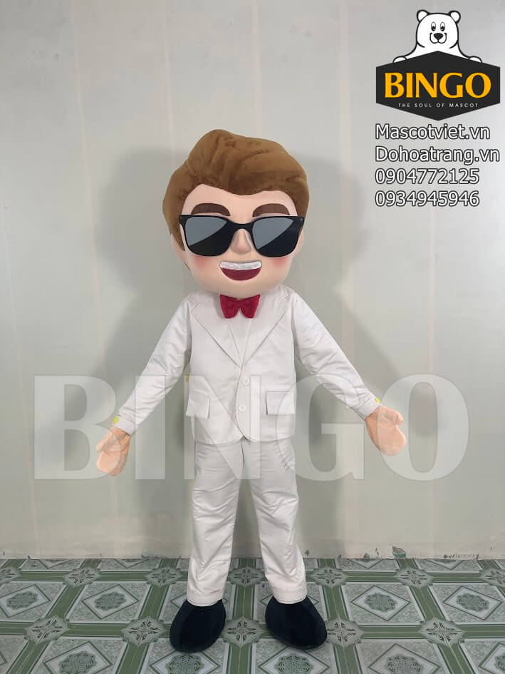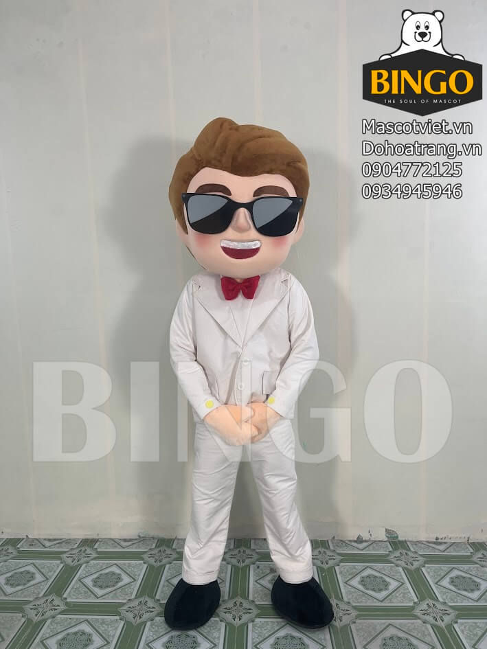 Mascot Quý Ông được thiết kế với phong cách lịch lãm, sang trọng và hiện đại. Tổng thể nhân vật mặc bộ vest trắng tinh khôi kết hợp nơ đỏ nổi bật, tạo điểm nhấn thời trang bắt mắt và đầy sức hút. Phần đầu mascot có tạo hình khuôn mặt tươi cười, mái tóc nâu được tạo khối gọn gàng và cặp kính đen sành điệu mang đến phong thái tự tin, trẻ trung nhưng vẫn toát lên vẻ quý phái.
