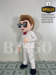 Bộ trang phục được cắt may tinh tế giúp form dáng đứng chuẩn, kết hợp giày đen đồng điệu tạo nên tổng thể hoàn chỉnh, hài hòa. Nhờ biểu cảm vui tươi và phong cách thời thượng, mascot Quý Ông rất phù hợp cho các sự kiện quảng bá, khai trương, hội nghị hoặc làm hình ảnh đại diện cho thương hiệu cao cấp, dịch vụ sang trọng.