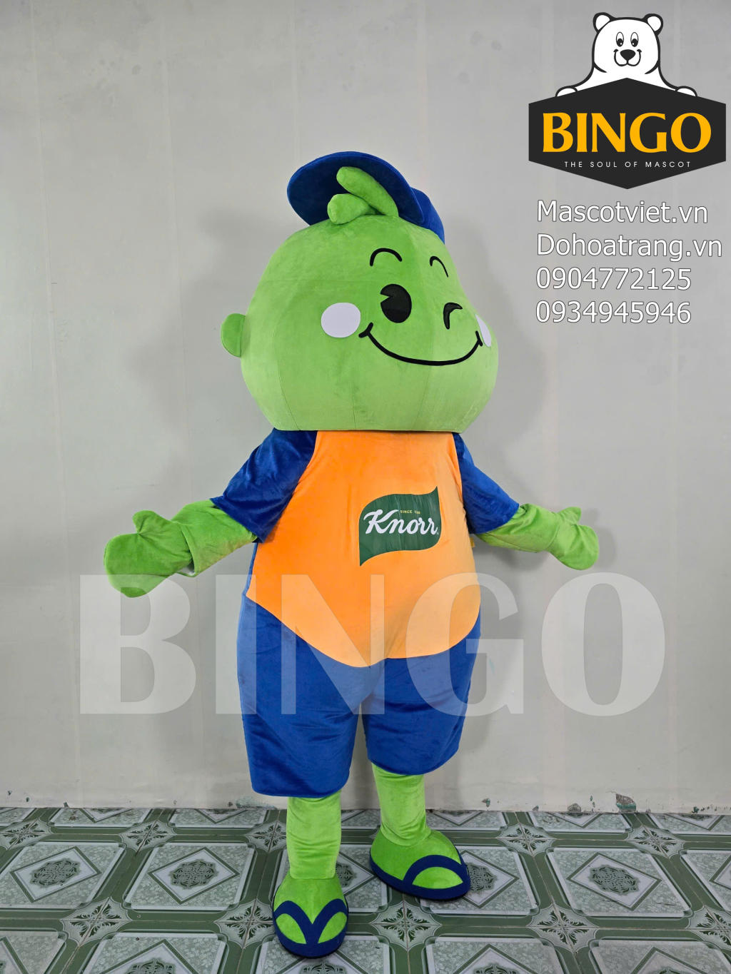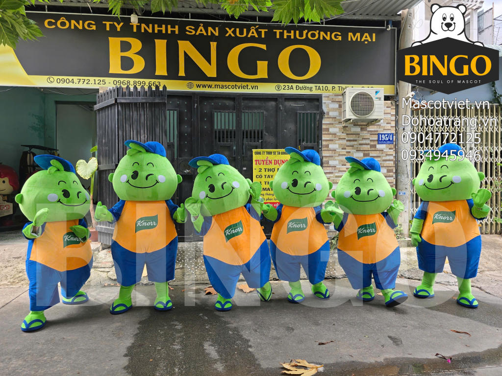 Mascot Rùa Knorr là một thiết kế hóa trang độc đáo và đáng yêu đại diện cho thương hiệu thực phẩm Knorr. Linh vật này nổi bật với phần đầu và tứ chi màu xanh lá cây tươi tắn cùng chiếc mai rùa màu xanh đậm đằng sau lưng tạo hình một chú rùa nhân cách hóa đầy sức sống. Khuôn mặt mascot được tạo hình ngộ nghĩnh với một bên mắt nháy tinh nghịch và nụ cười rộng rạng rỡ thể hiện sự tươi mới và thân thiện.