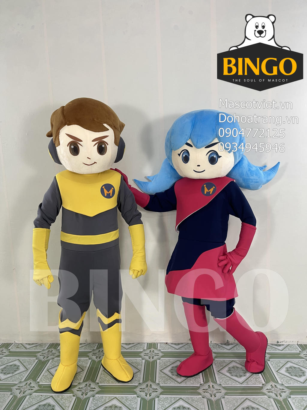 Mascot Siêu Nhân Mena gồm hai nhân vật nam và nữ với thiết kế mạnh mẽ, cuốn hút. Phiên bản nam nổi bật với bộ đồ vàng – xám hiện đại, mang dáng vẻ anh hùng công nghệ. Phiên bản nữ duyên dáng nhưng không kém phần mạnh mẽ với trang phục đỏ – đen phối chéo cá tính. Cả hai đều có phần đầu được thiết kế ngộ nghĩnh, biểu cảm sinh động và kiểu tóc đặc trưng: tóc xanh buộc hai bên cho nữ và tóc nâu tai nghe cho nam. Bộ mascot được làm từ chất liệu vải cao cấp, mềm nhẹ và thông thoáng, phù hợp khi biểu diễn hoặc chụp hình tương tác. Đây là lựa chọn lý tưởng cho các chương trình thiếu nhi, khai trương, roadshow hay hoạt động quảng bá thương hiệu. Với màu sắc nổi bật và hình ảnh thân thiện, mascot Mena thu hút mọi ánh nhìn và tạo dấu ấn khó quên cho sự kiện của bạn.