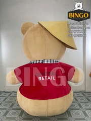 Mô hình gấu GO! cao 2m4 được thiết kế với vẻ ngoài vô cùng dễ thương và thân thiện. Toàn thân gấu phủ màu nâu kem ấm áp, khuôn mặt tròn phúc hậu với đôi mắt đen tròn, mũi và miệng cong nhẹ tạo cảm giác luôn tươi cười. Gấu đội nón lá nghiêng sang một bên, kết hợp chiếc áo thun đỏ nổi bật in logo “GO!” phía trước và dòng chữ “CENTRAL RETAIL” ở mặt sau.