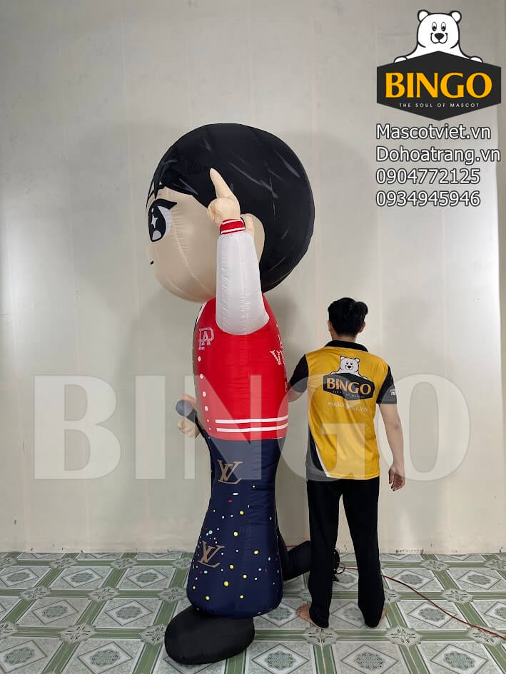 Mô hình hơi khổng lồ cao 2m4 mô phỏng ca sĩ/rapper HIEUTHUHAI theo phong cách hoạt hình (chibi) là một công cụ truyền thông cực kỳ hiệu quả, với kích thước nổi bật thu hút sự chú ý tại các sự kiện âm nhạc, giải trí.