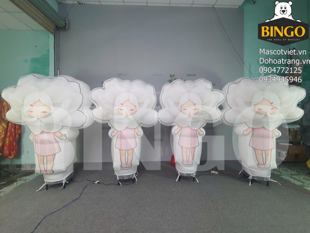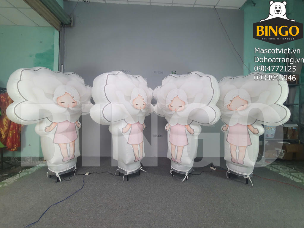 Rối bay Bé Hoa là lựa chọn quảng cáo hoàn hảo cho các nhãn hàng. Với chiều cao nổi bật và chuyển động uốn lượn linh hoạt, rối bay tạo hiệu ứng thị giác mạnh mẽ, thu hút khách hàng từ xa. Thiết kế mô phỏng nhân vật Bé Hoa rạng rỡ tươi tắn và các cánh hoa xòe rộng sinh động. Sản phẩm sử dụng chất liệu vải chuyên dụng bền bỉ, chịu được sức gió lớn, giúp tối ưu hóa hiệu quả nhận diện thương hiệu tại các buổi khai trương và sự kiện ngoài trời.