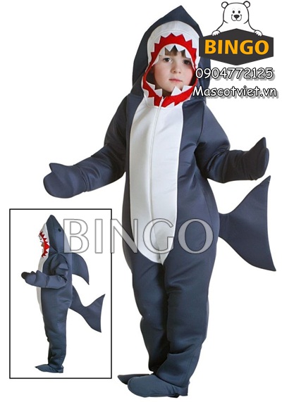 Có bao giờ bạn nghĩ mình sẽ gặp chú cá mập hung dữ trên cạn ngoài đời chưa? Đến với Bingo Quý khách sẽ thấy được mascot cá mập hoàn hảo như thế nào! Trang phục cá mập thiết kế với màu xám đặc trưng với một lớp vải trắng dưới bụng, và có một khuôn mặt dễ thương.